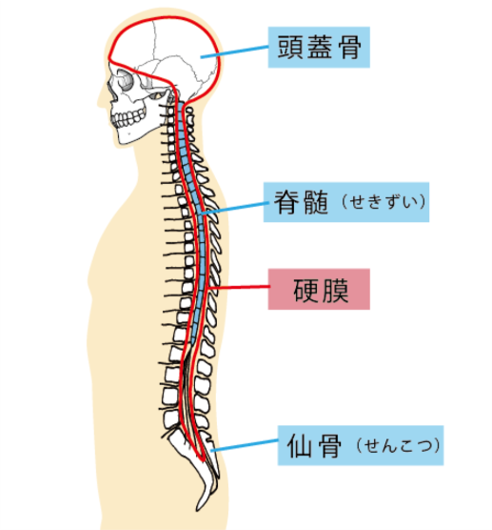 頭蓋骨➔背骨(脊柱管)➔仙骨まで連続しており、身体の中心を縦に通る構造をしています。