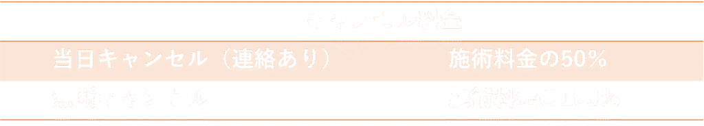 尚、予約当日のキャンセルに関しては、以下の通りキャンセル料を申し受けしておりますので、予めご了承ください。